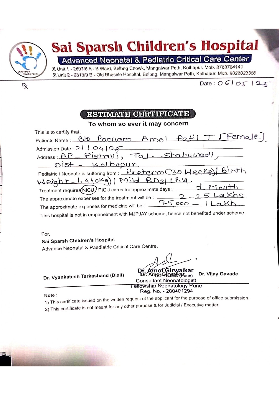 As a parent, we were prepared to do everything to ensure our newborn has a healthy life ahead. We were informed that the cost of the medical expense is Rs. 3,50,000/-